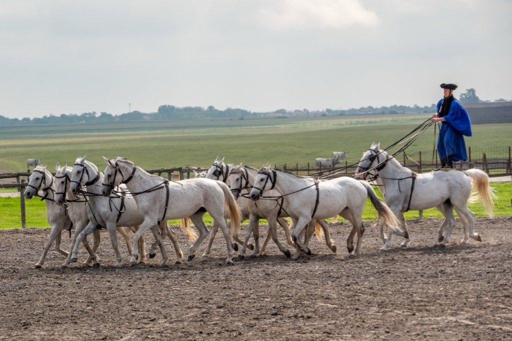 The finale involved an impressive display of 9 in the hand with the horseman atop the last 2 horses. You would definitely need flexible knees and a good sense of balance to do this.