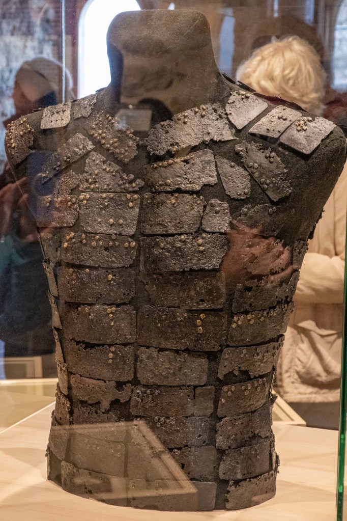 Taking a few modern short cuts the palace interior held numerous reconstructions of weapons and armour. It also had some original Brigandine armour which had been put back together… a rare example of plate armour, beautifully decorated.