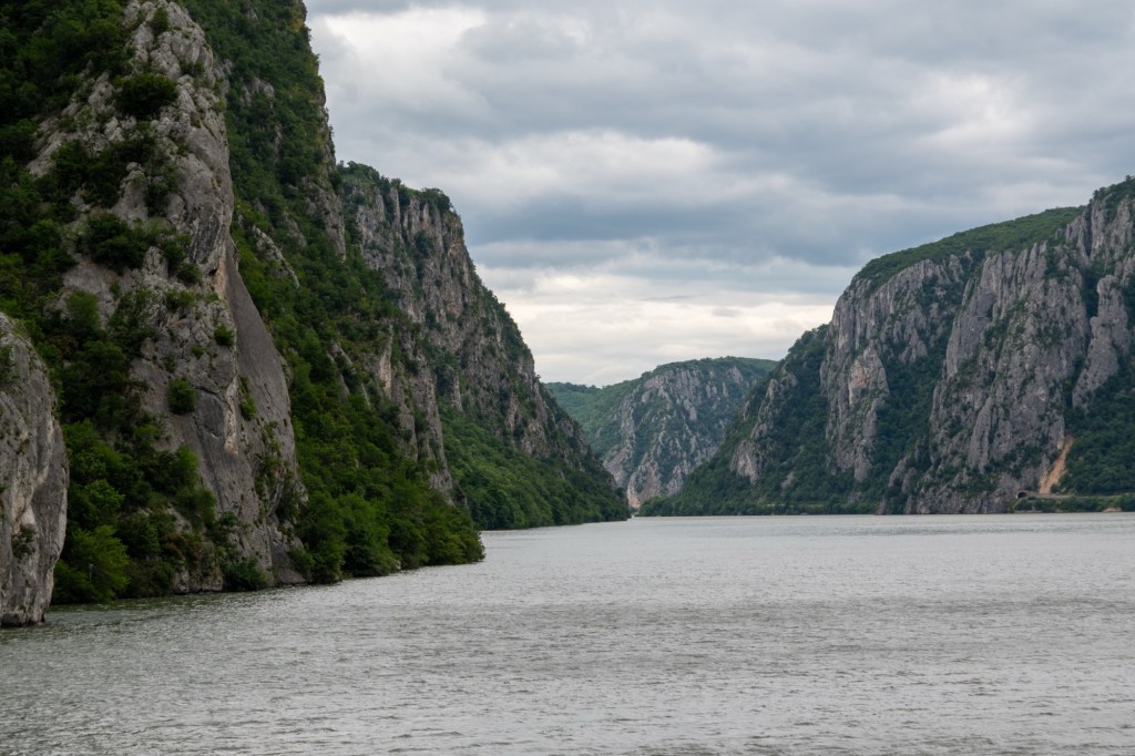 The Iron Gate is a series of spectacular narrow gorges slicing through the Carpathian and Balkan mountains. This was enhanced by the building of the Iron Gate Dam, flooding the area up to an additional 30 metres, and unfortunately destroying numerous villages, archeological sites and stopping sturgeon migration. Even on a grey day it was impressive, albeit a bit cold.